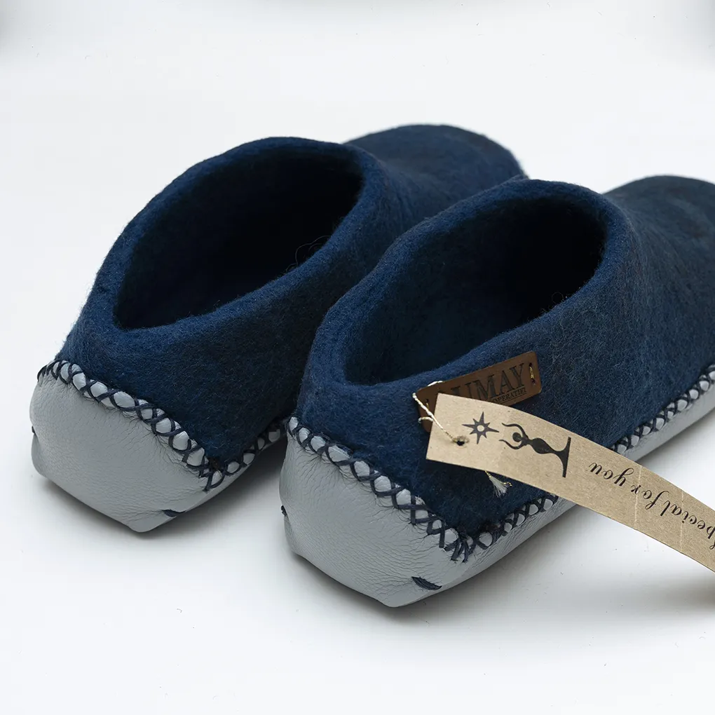 Doğal malzemelerin iyileştirici gücünden ilham alan bu özel ev ayakkabısı, %100 koyun yününden tamamen elde üretilmiştir. Tabanı gerçek deri, dikişleri ise makine kullanılmadan elde yapılmıştır. Her bir çift, el emeğinin, doğal liflerin ve geleneksel zanaatin benzersiz bir yansımasıdır.