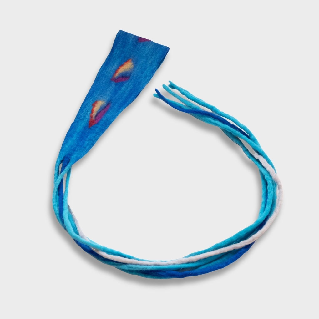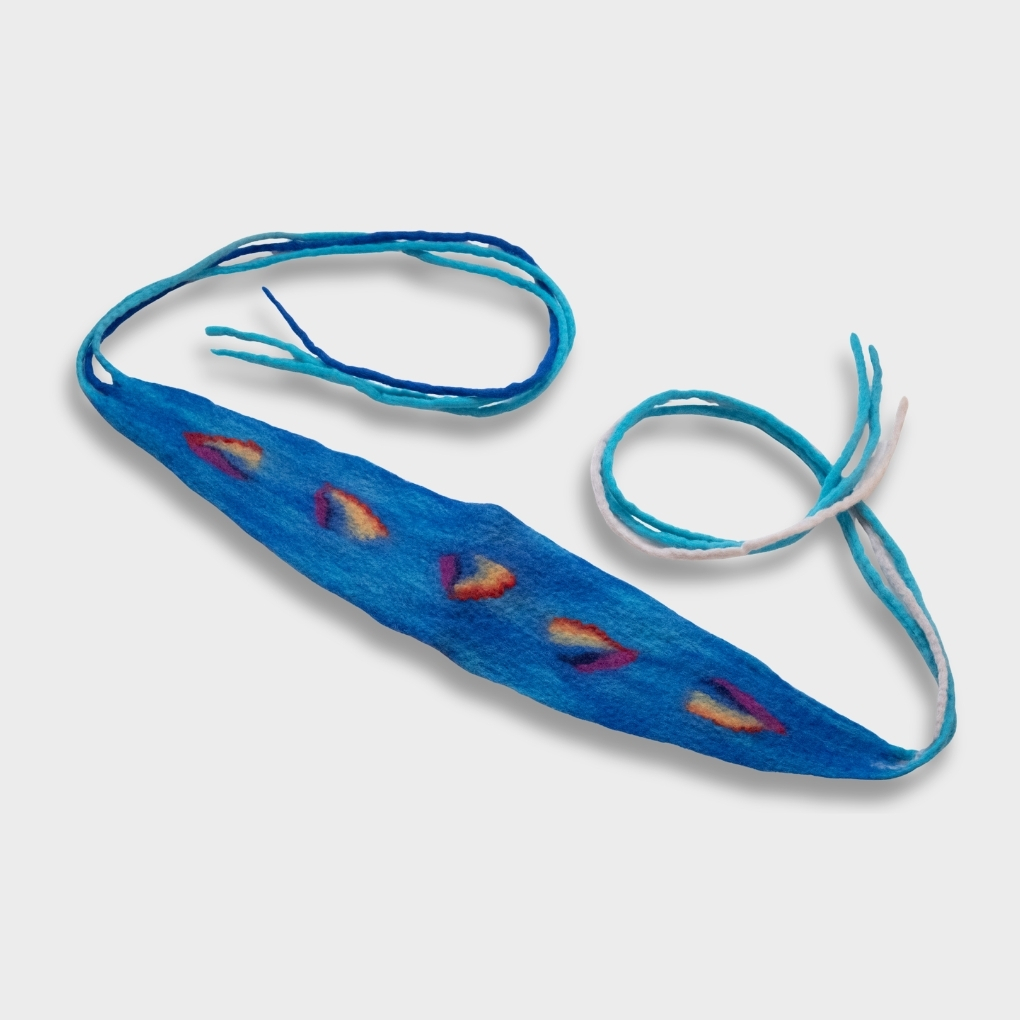Günün temposunda baş ve boyun bölgesinde oluşan gerginliği hafifletmeye yardımcı olan Mavi Düş Umay Sargısı, %100 doğal koyun yününden el emeğiyle üretilmiştir. Derin mavi zemin üzerinde beliren sıcak renk geçişleri, gökyüzünün ve suyun sakin ama güçlü akışından ilham alır; stilinize huzurlu ve hayal dolu bir karakter kazandırır.