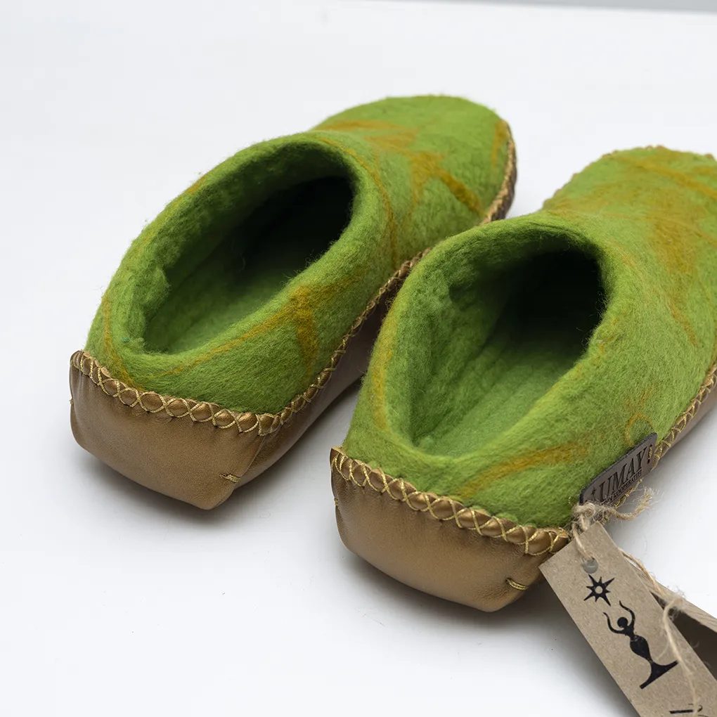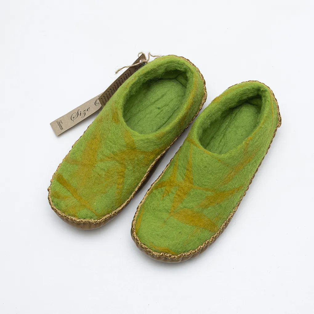 Doğal malzemelerin iyileştirici gücünden ilham alan bu özel ev ayakkabısı, %100 koyun yününden tamamen elde üretilmiştir. Tabanı gerçek deri, dikişleri ise makine kullanılmadan elde yapılmıştır. Her bir çift, el emeğinin, doğal liflerin ve geleneksel zanaatin benzersiz bir yansımasıdır.