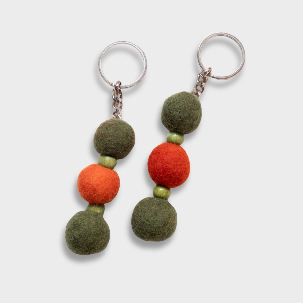 Doğal yünün kendine özgü yapısı sayesinde anahtarlık hafif, dayanıklı ve zamansız bir kullanım sunar. Keçenin form tutan dokusu, anahtarlarınızı çizilmelere karşı nazikçe korurken; zeytin yeşili ve mandalina turuncusunun dengeli renk oyunuyla anahtarlığınıza enerjik bir vurgu ve el yapımı bir karakter kazandırır. Kimyasal işlem görmemiş doğal lifler, sade lüks anlayışını benimseyenler için bilinçli ve zarif bir tercihtir.